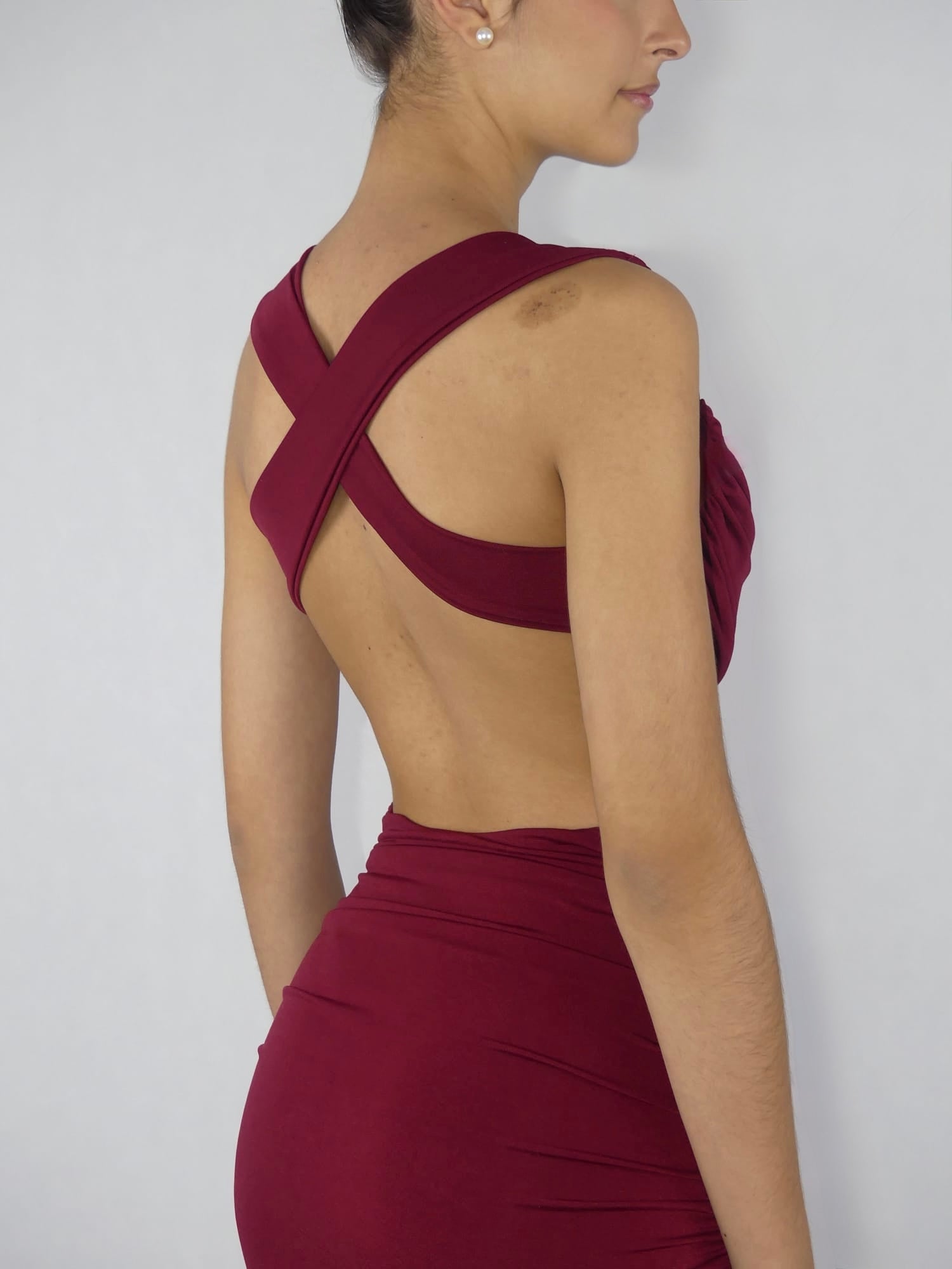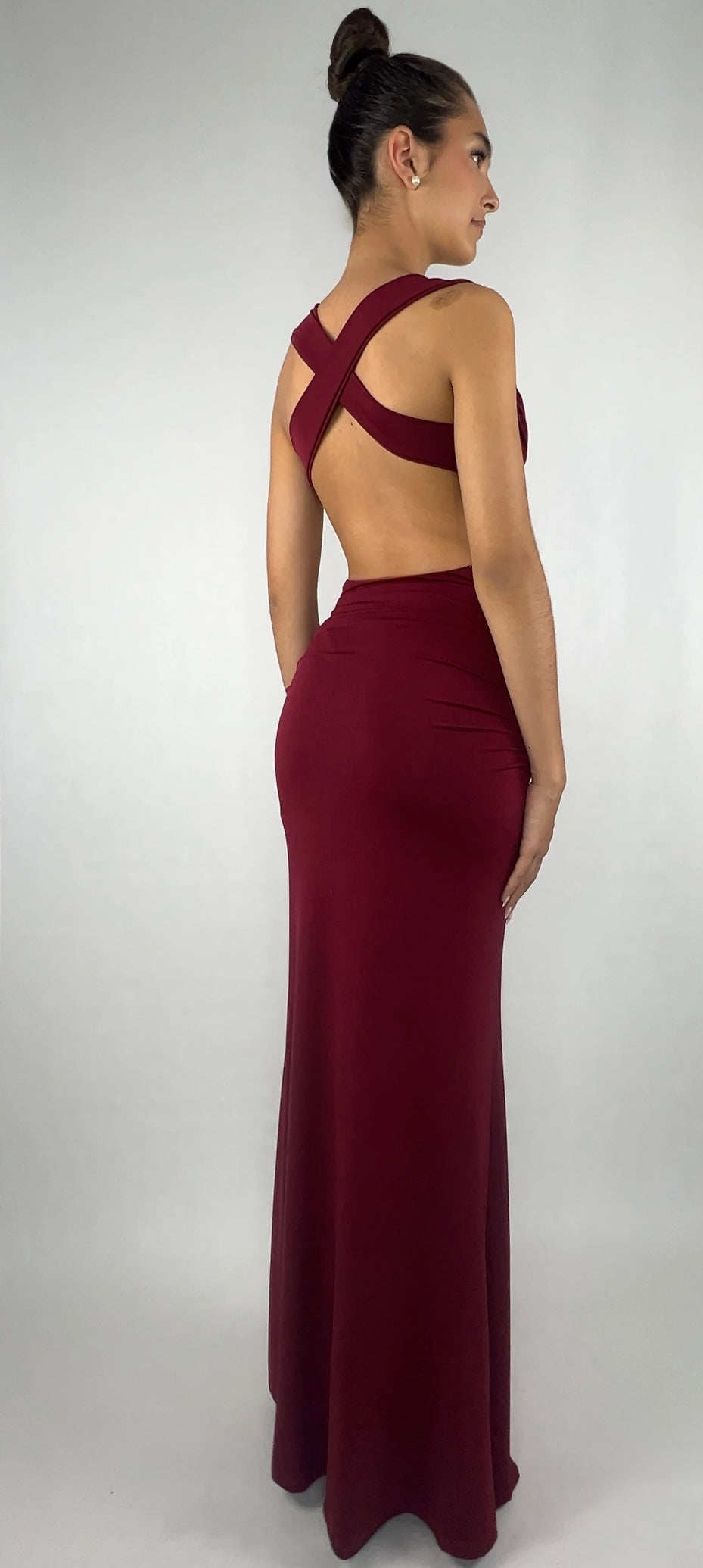 Impresiona con este elegante vestido rojo largo, diseñado para robar miradas y resaltar tu figura con estilo. Su espalda cruzada aporta un toque sensual y sofisticado, mientras que los detalles dorados en las tiras añaden un brillo sutil y glamuroso.