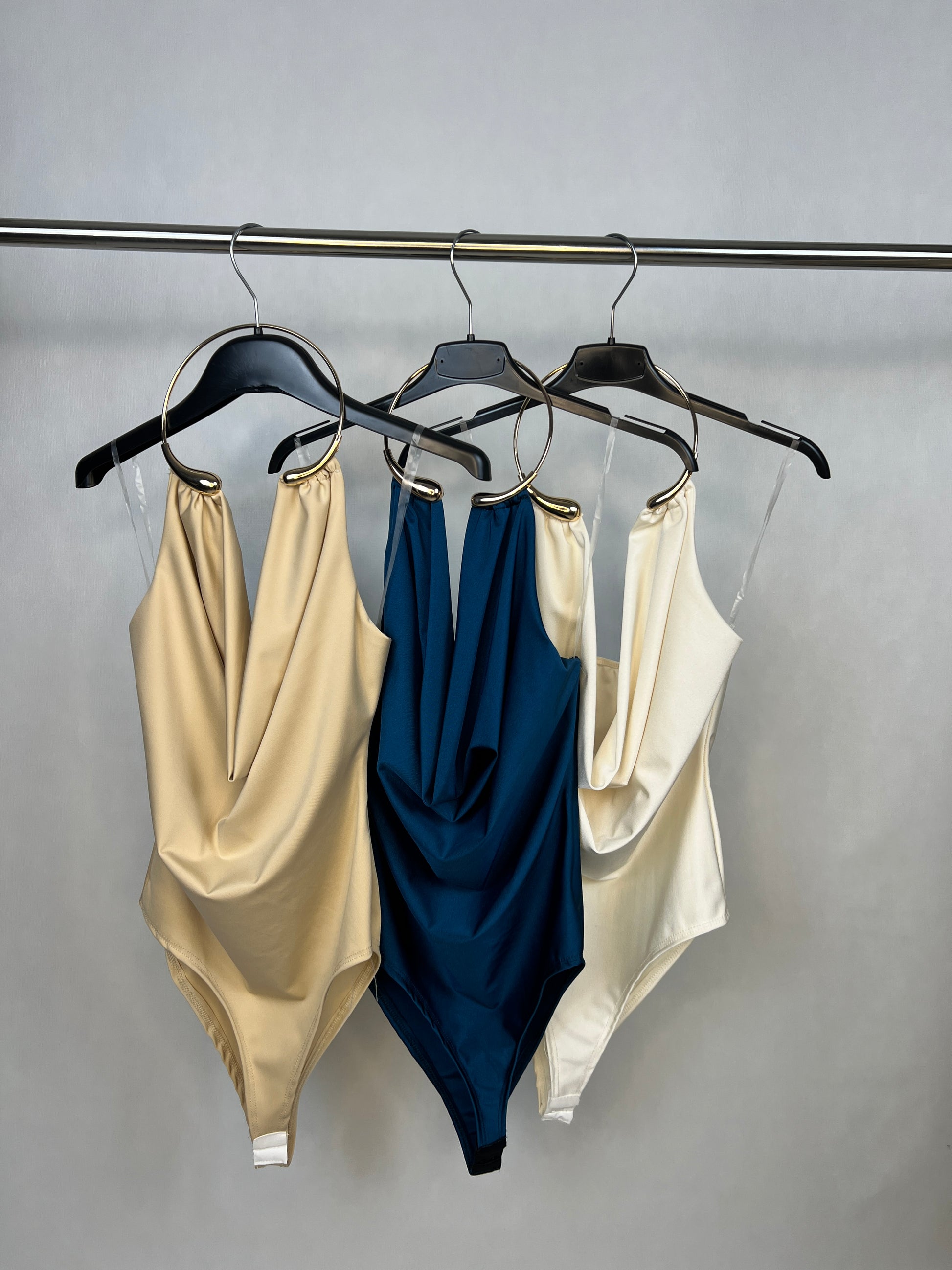 Un toque de elegancia para tus looks. Este body destaca por su delicada decoración dorada en el cuello, que aporta brillo y estilo sin perder la sencillez. Perfecto para combinar con faldas, pantalones o jeans y crear outfits refinados y modernos.