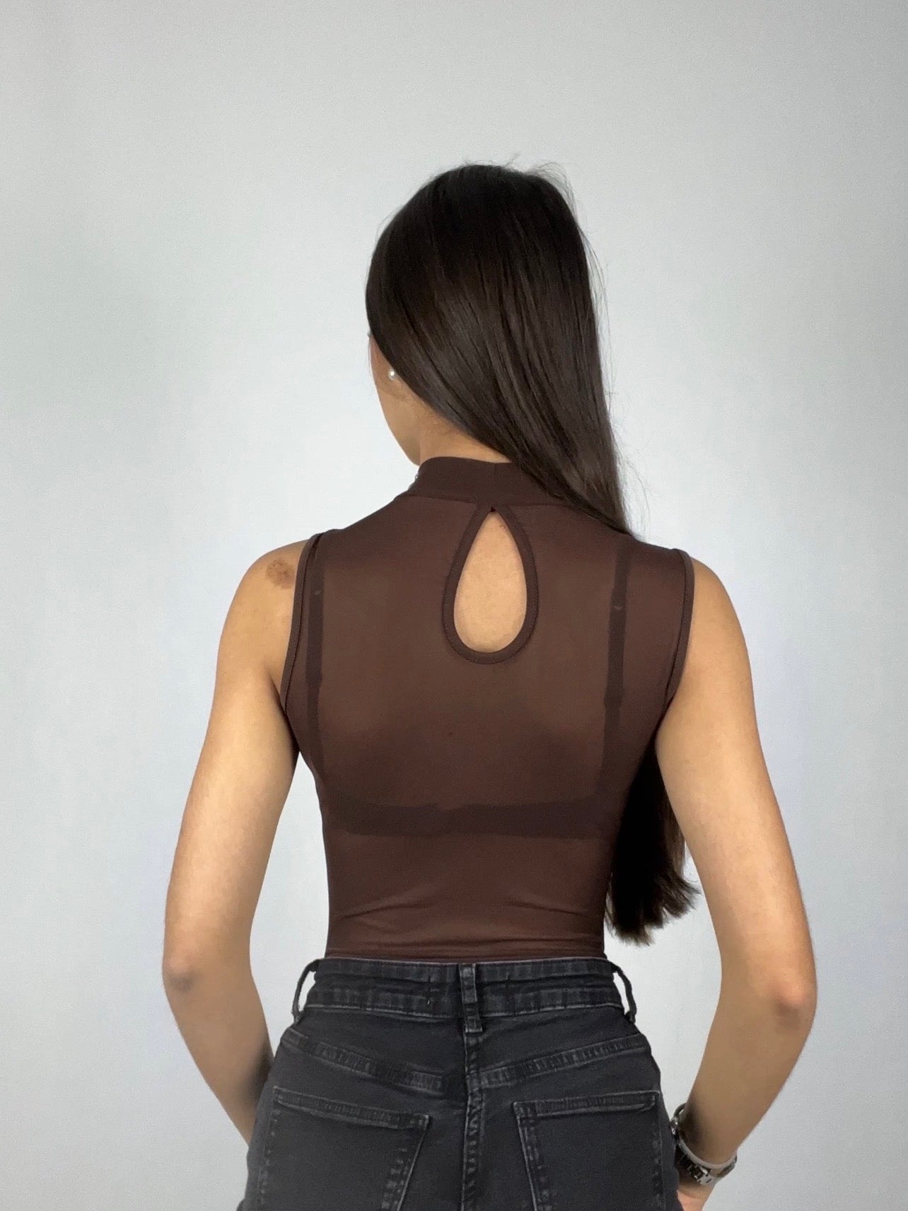 Este body marrón destaca por su diseño audaz y sofisticado, con un tejido semitransparente que aporta sensualidad y estilo. Las tachuelas añaden un toque moderno y rebelde, creando una prenda llamativa que realza la figura y eleva cualquier look. Ideal para combinar con diferentes prendas y crear estilismos impactantes, es perfecto para ocasiones especiales, salidas nocturnas o para quienes buscan marcar tendencia con personalidad.